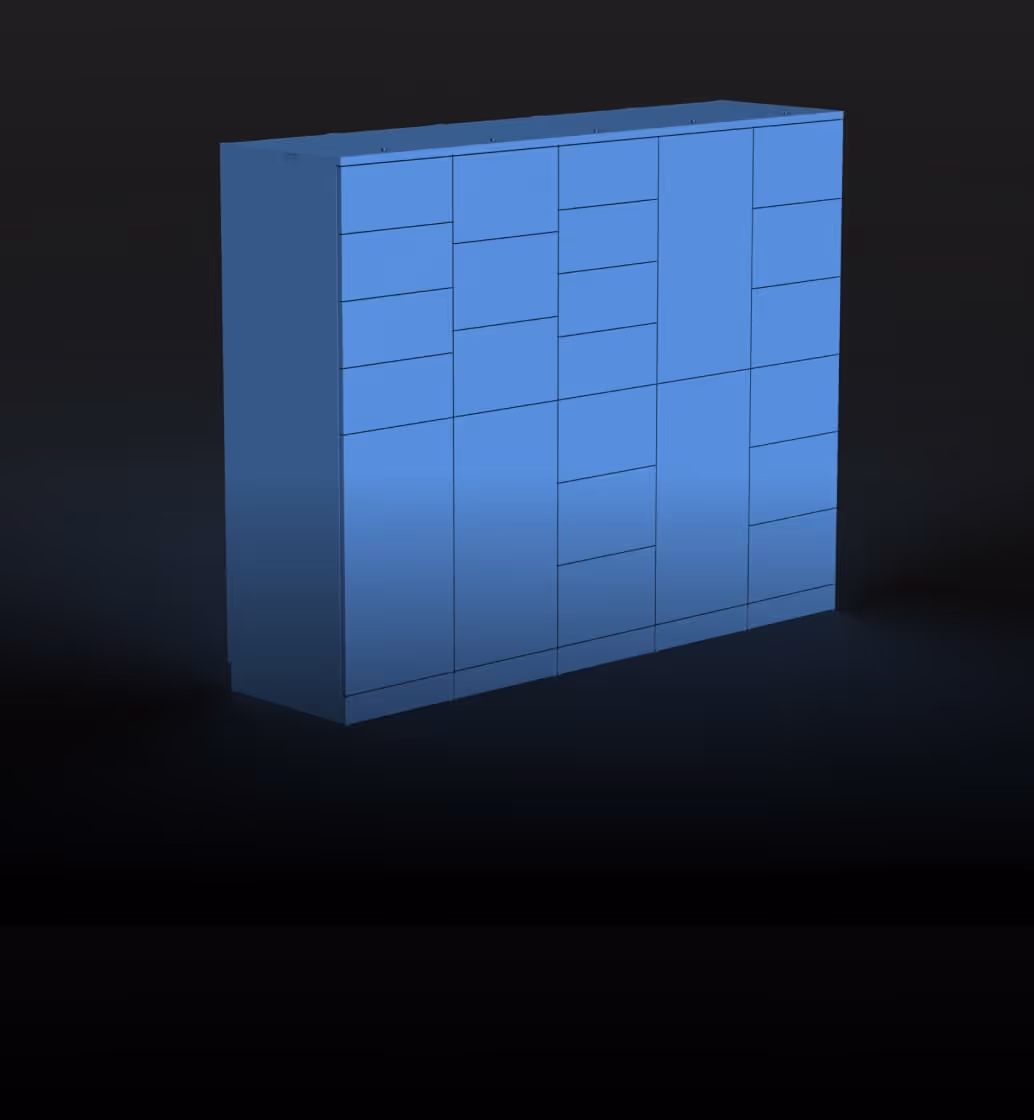 Onze slimme verhuurkluisjes van Keynius zijn modulair en schaalbaar, ontworpen om de opslag te maximaliseren in een minimale voetafdruk. Wij zijn een van de weinige slimme lockerbedrijven die elk aspect van de productie beheert, zodat u elk detail naar wens kunt aanpassen - van een enkele kolom tot een volledige lockerbank, waardoor een optimaal ruimtegebruik wordt gegarandeerd.