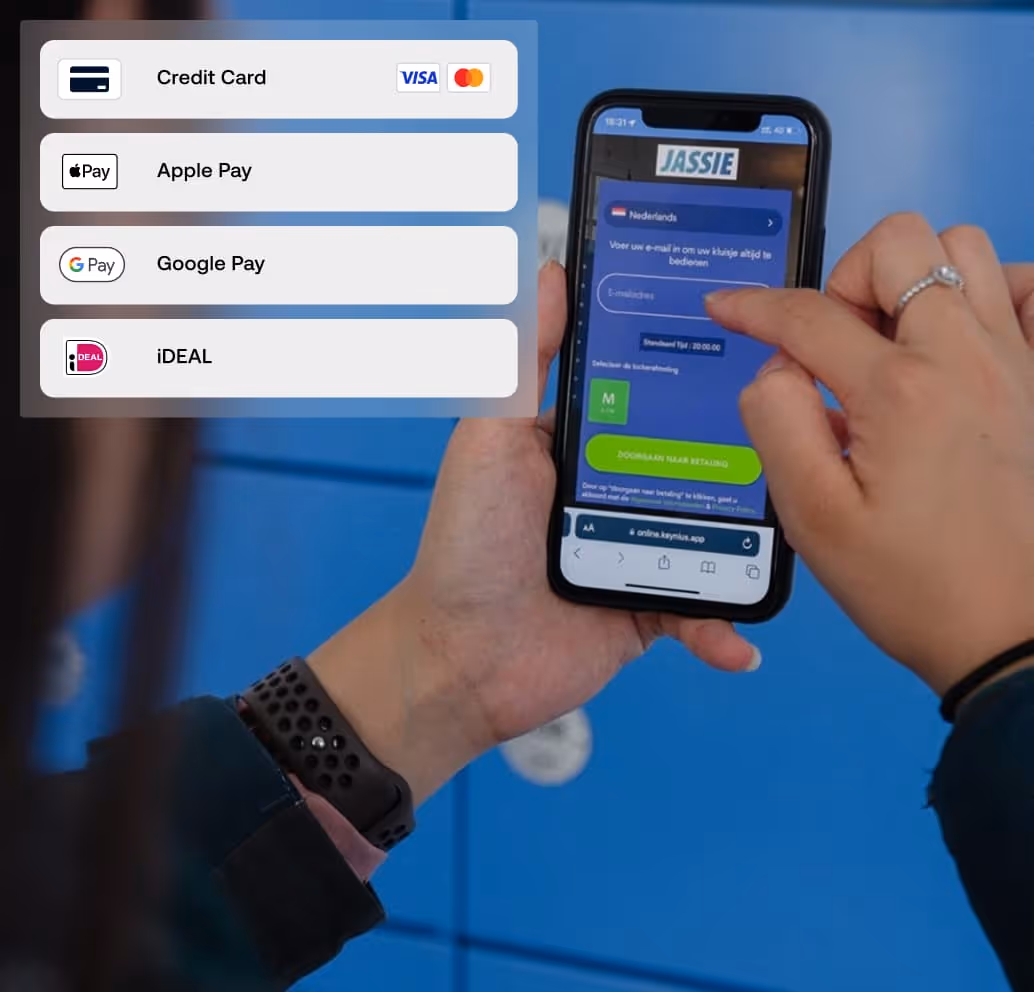 Integreer digitale betalingen via Credit/ Debit kaarten en mobiele portemonnees, voor kluisjes zonder contant geld.